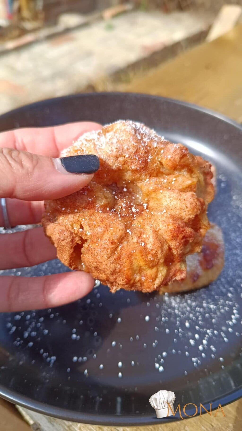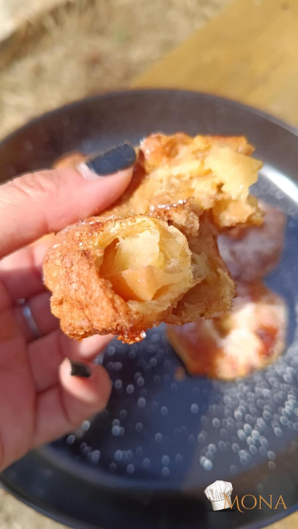 Ha az összessel megvagyunk, sütőpapíros tepsire tesszük, megszórhatjuk egy kis édesítővel a tetejét, olajjal lefőjjuk, majd 180 fokos sütőben kb. 15-20 perc alatt megsütjük.