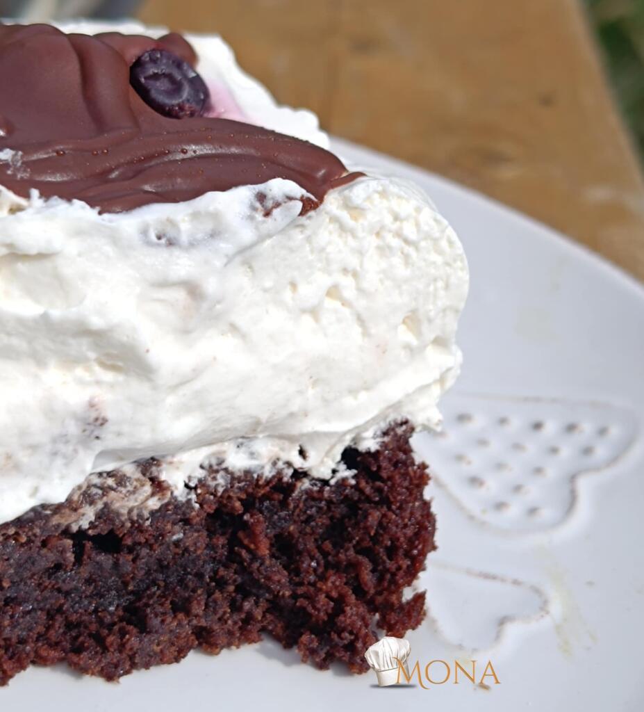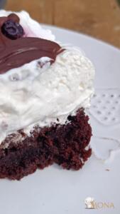 Ha a piskóta megsült és kihűlt, akkor a tetejére réteggezzük a krémet az áfonyával ( krém, áfonya, krém, áfonya ).