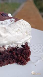 A krémhez a tejszínt kemény habbá verjük, majd hozzáadjuk az édesítőt, vanília aromát, mascarponét és jól kikeverjük.
