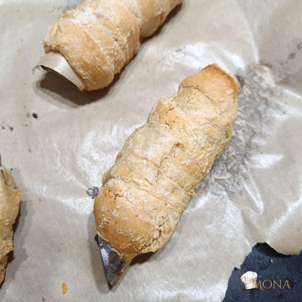 Még egyszer megmártjuk a rolókat a csicseris keverékben, sütőpapíros tepsire tesszük őket, lekenjük vékonyan olajjal, megszórjuk sóval őket, majd 180 fokos sütőben kb. 25 perc alatt megsütjük.