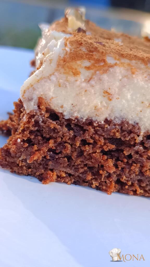 A krémet a megsült piskótára egyengetjük, majd megszórjuk fahéjjal – vagy mézeskalács fűszerrel.