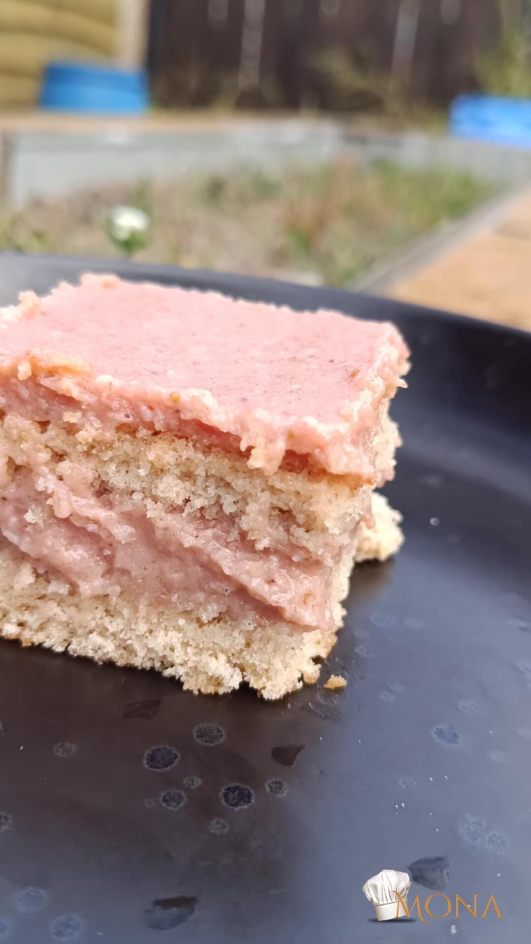 Ha a piskóta meghült, akkor kettévágjuk, megtöltjük a krémmel, és a tetejét is bevonjuk vele.