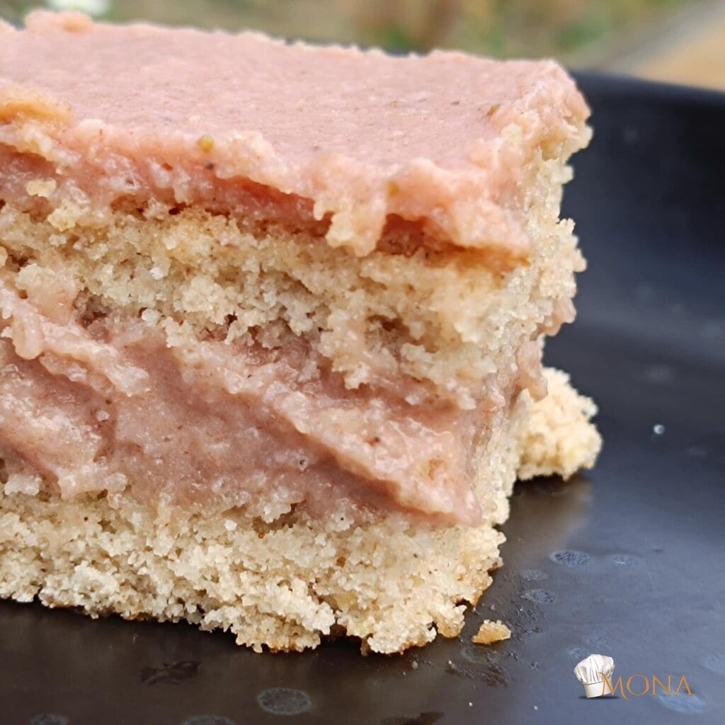21×21 – es sütőpapírral kibélelt formába tesszük és 180 fokos sütőben kb. 30 perc alatt megsütjük.