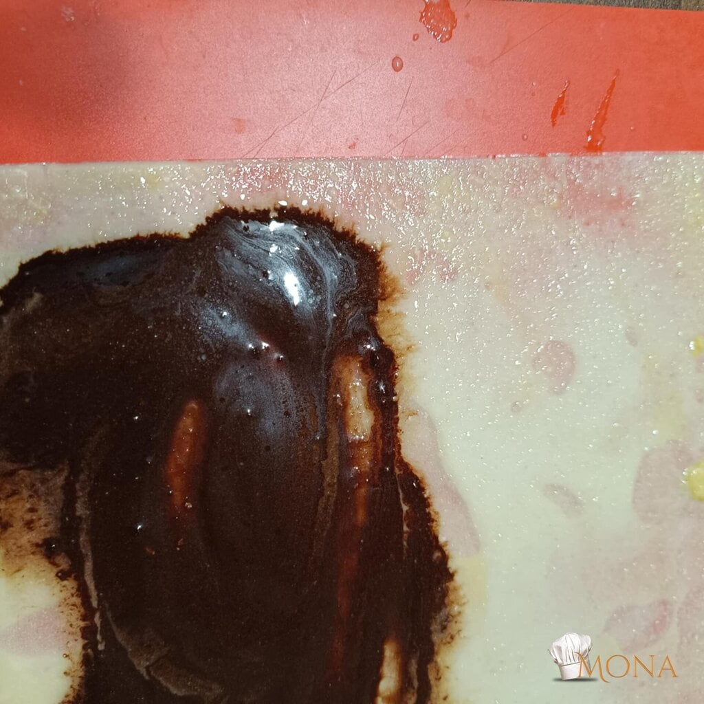 A csicseriborsó lisztet, sütőport, édesítőt, vizet alaposan kikeverjük.