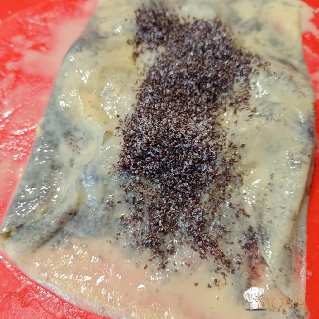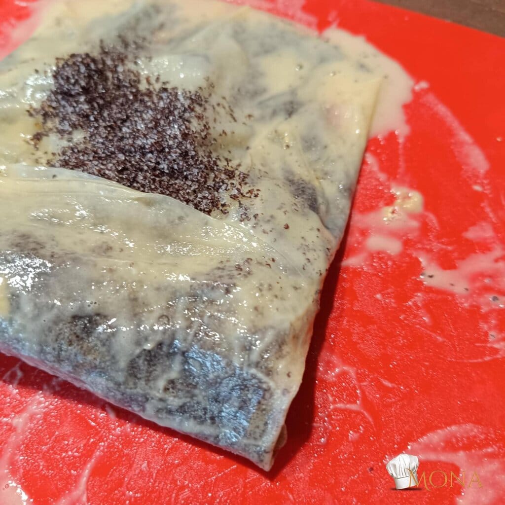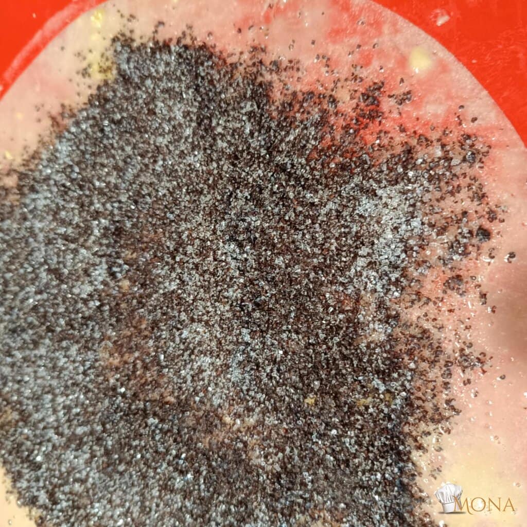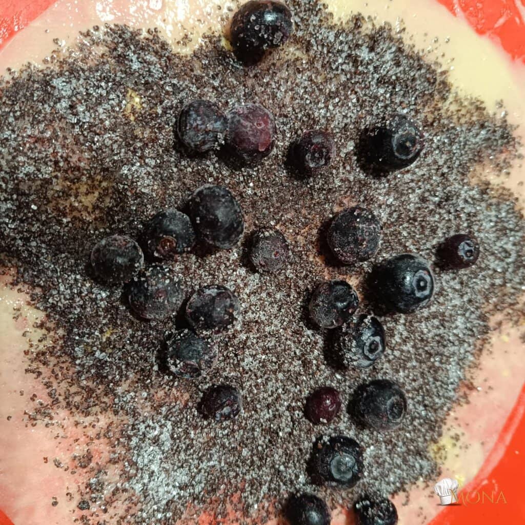 Megszórjuk mákkal ( ami már édesítve van ), majd megszórjuk áfonyával.