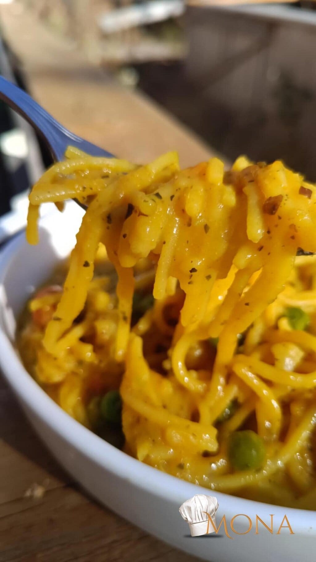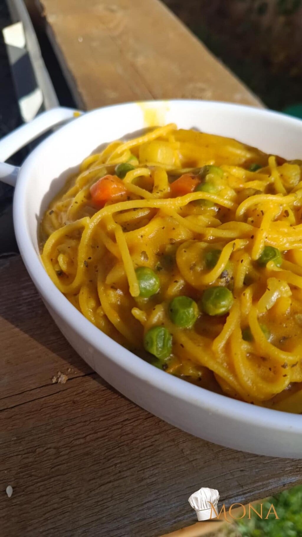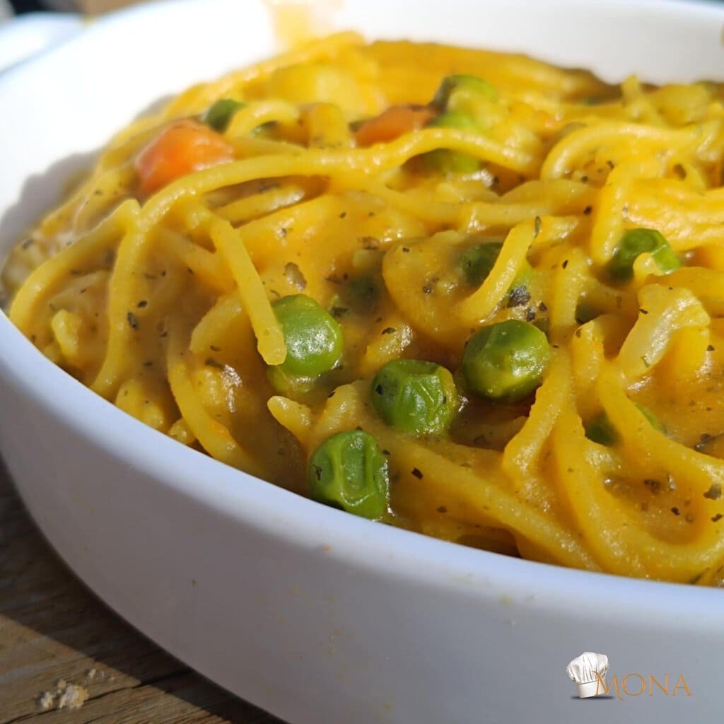 A zöldséghez adjuk a sütőtököt, növényi tejszínt, alaposan összekeverjük, majd hozzáadjuk a téztát, összekeverjük, majd tálalható.