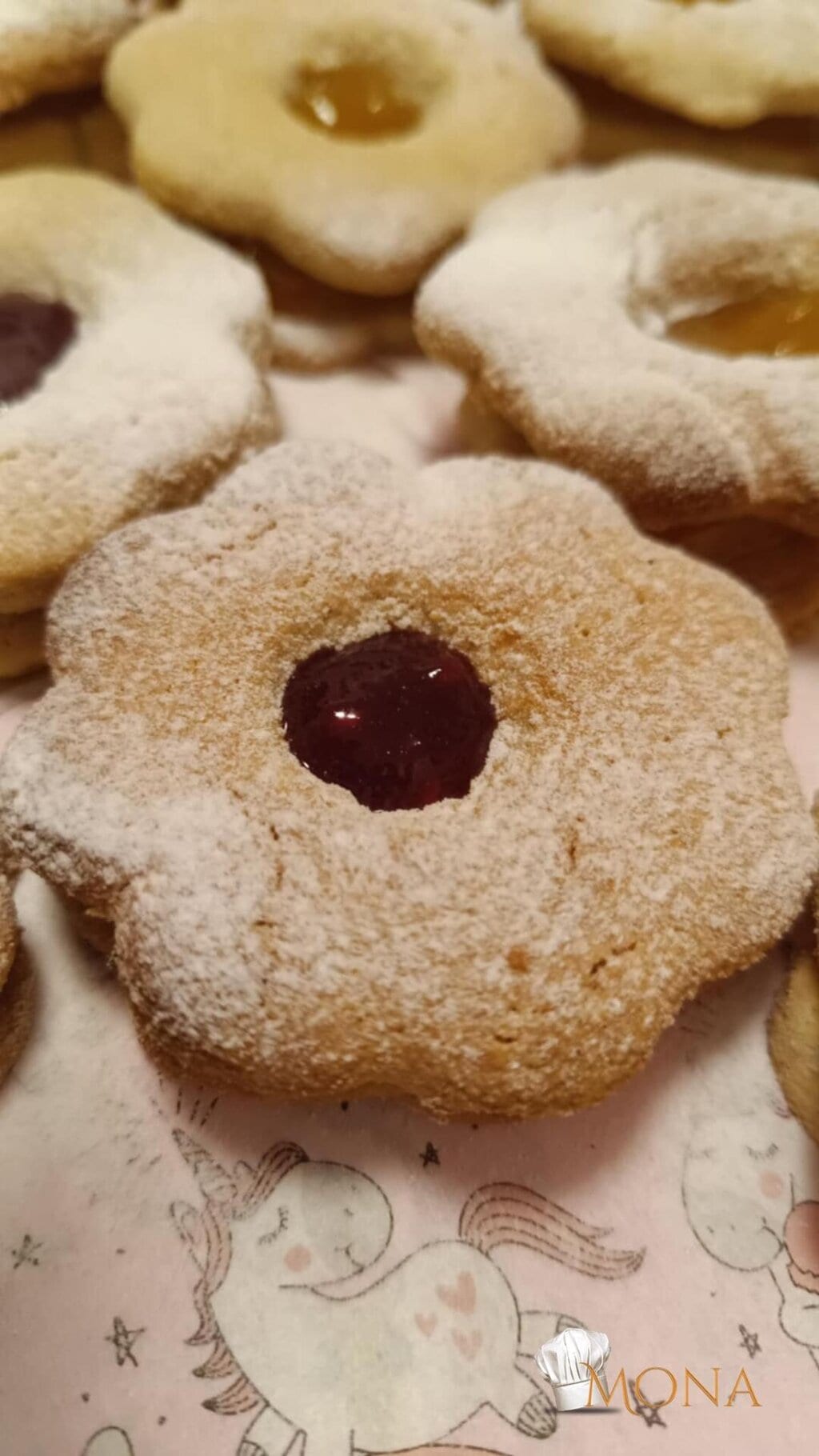 Ha kihűlt, akkor lekvárral ragasszunk ösze két – két darabot, szórjuk meg porédesítővel.