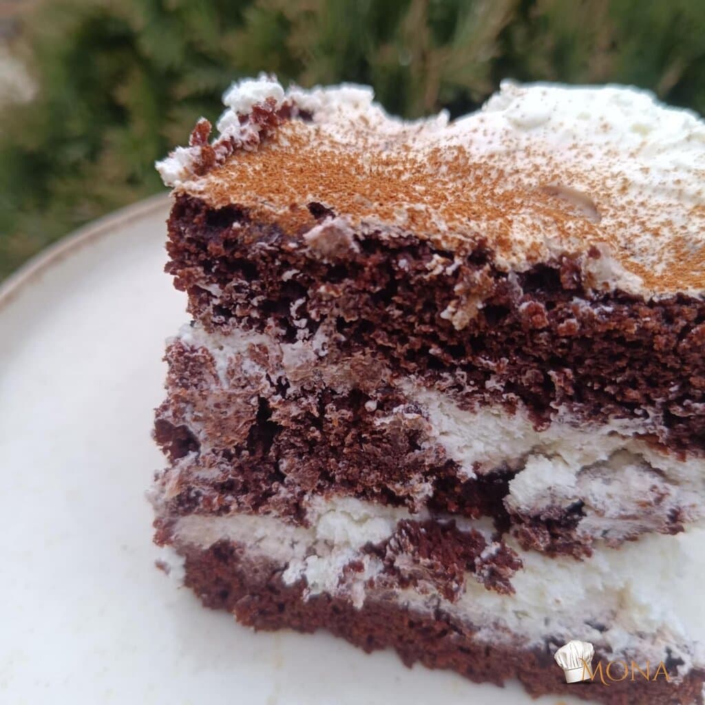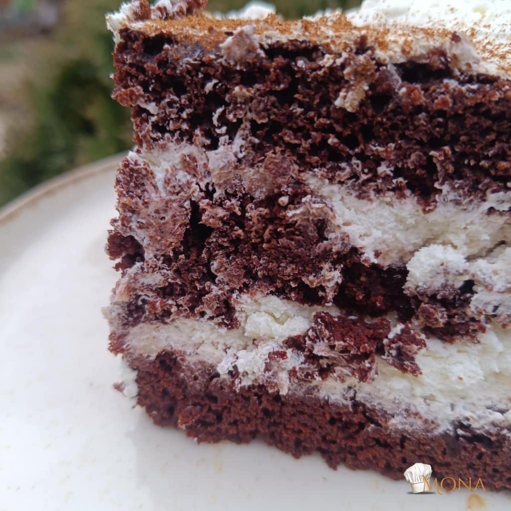 Ha meghűlt a piskóta, kettévágjuk,megtöltjük, és a tetejére is teszünk a krémből.
