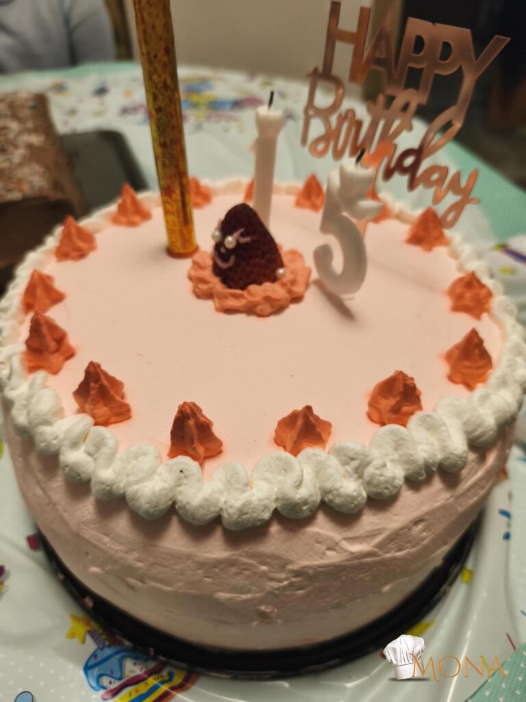 Másnap a növényi tejszínt kemény habbá verjük, hozzáadjuk az édesítőt és piros festéket, egyneművé dolgozzuk, majd bevonjuk vele a tortát.