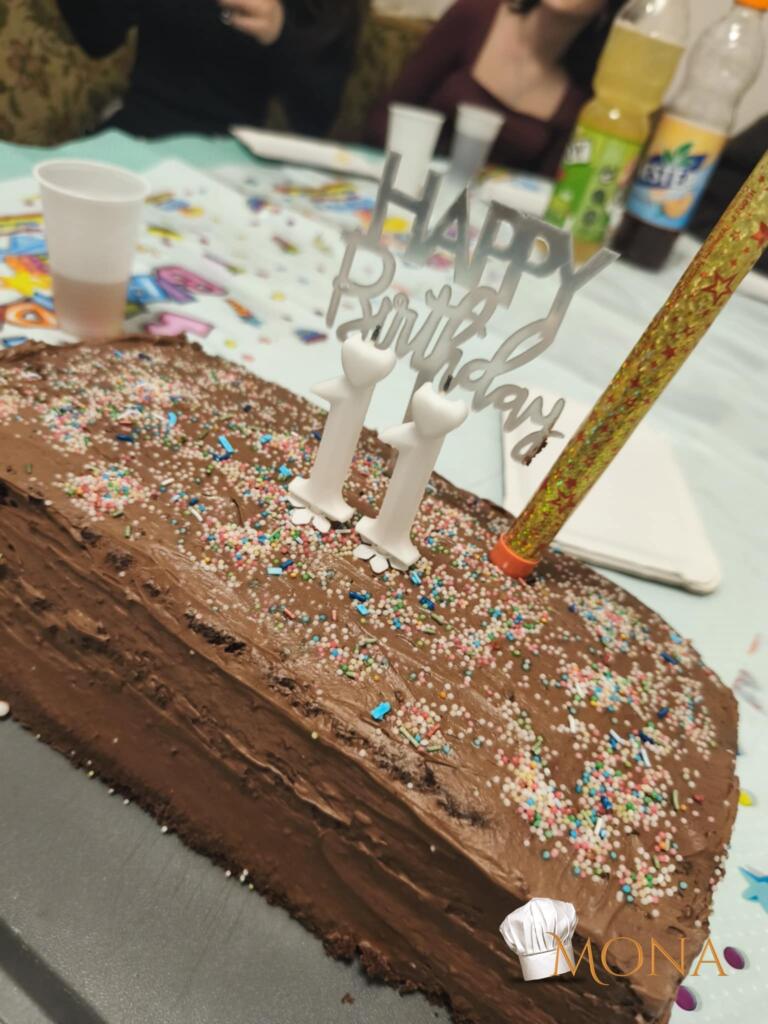 Ha kész,akkor becsomagoljuk alufóliába, egy éjjelre a hütőbe tesszük, másnap bevonjuk a maradék krémmel.