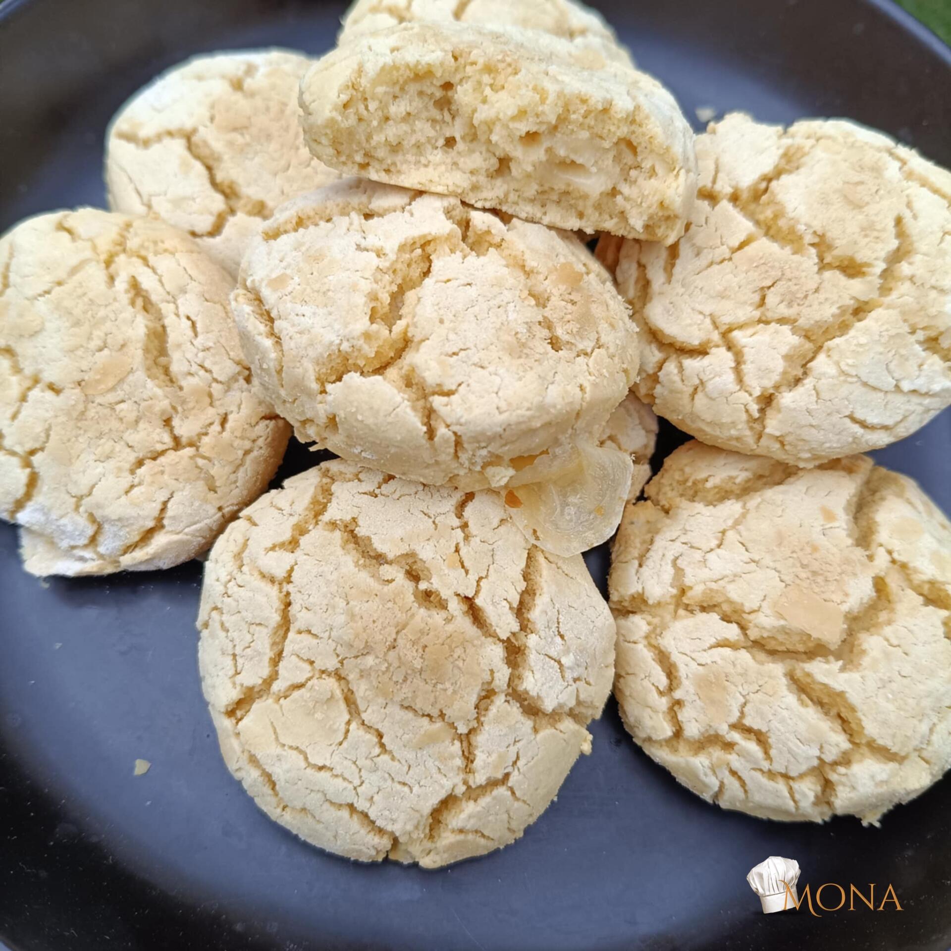 A száraz alapanyagokat egy tálban elkeverjük, majd beledolgozzuk a margarint és a növényi sajtot, végül a vizet.
