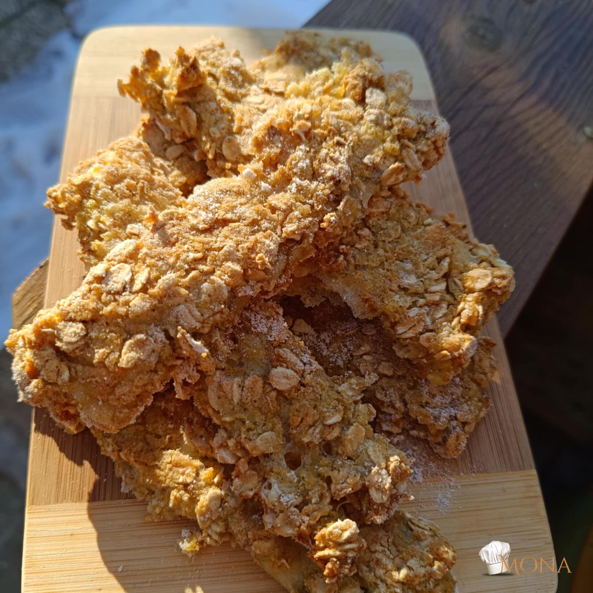 Majd sütőpapíros tepsire tesszük , olajjal vékonyan lekenjük és 180 fokos sütőben kb. 20 perc alatt megsütjük.