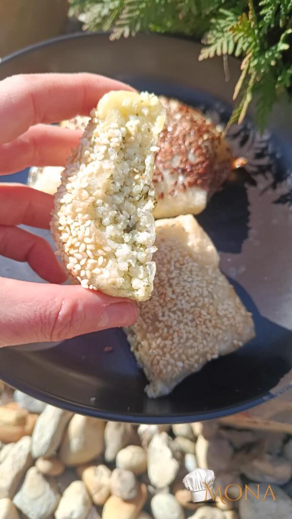 A közepébe tesszük a köles felét, majd két szemközti oldalát ráhatjuk, majd a másik két oldalát.