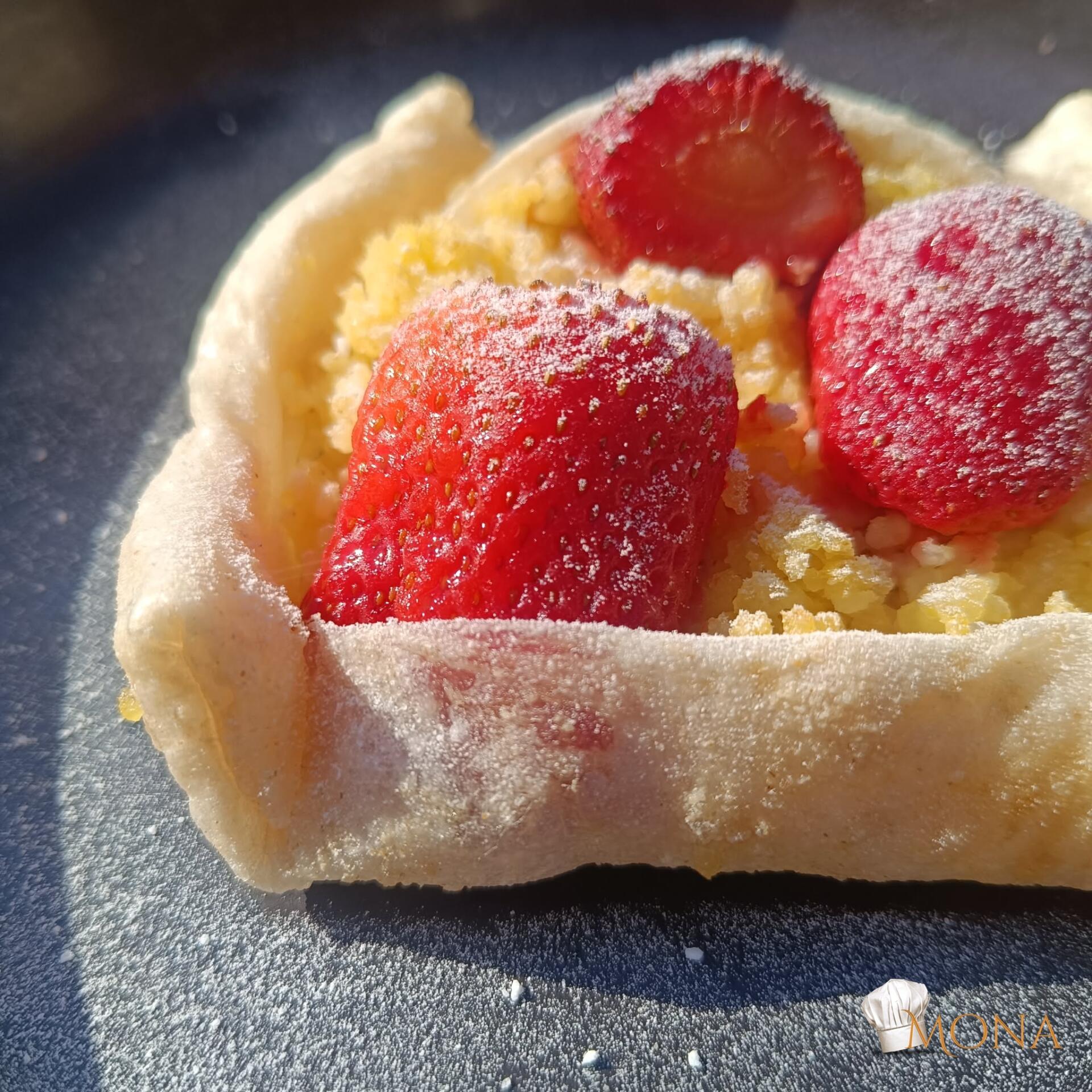 Széleket olajjal vékonyan lekenjük, majd 180 fokos sütőben kb. 20-25 perc alatt megsütjük.