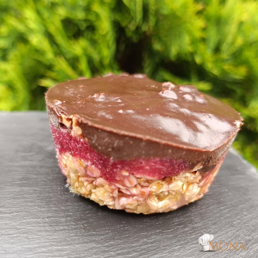 Elosztjuk a muffin formákba, majd jön a maradék zabos keverék, végül csokival borítjuk.