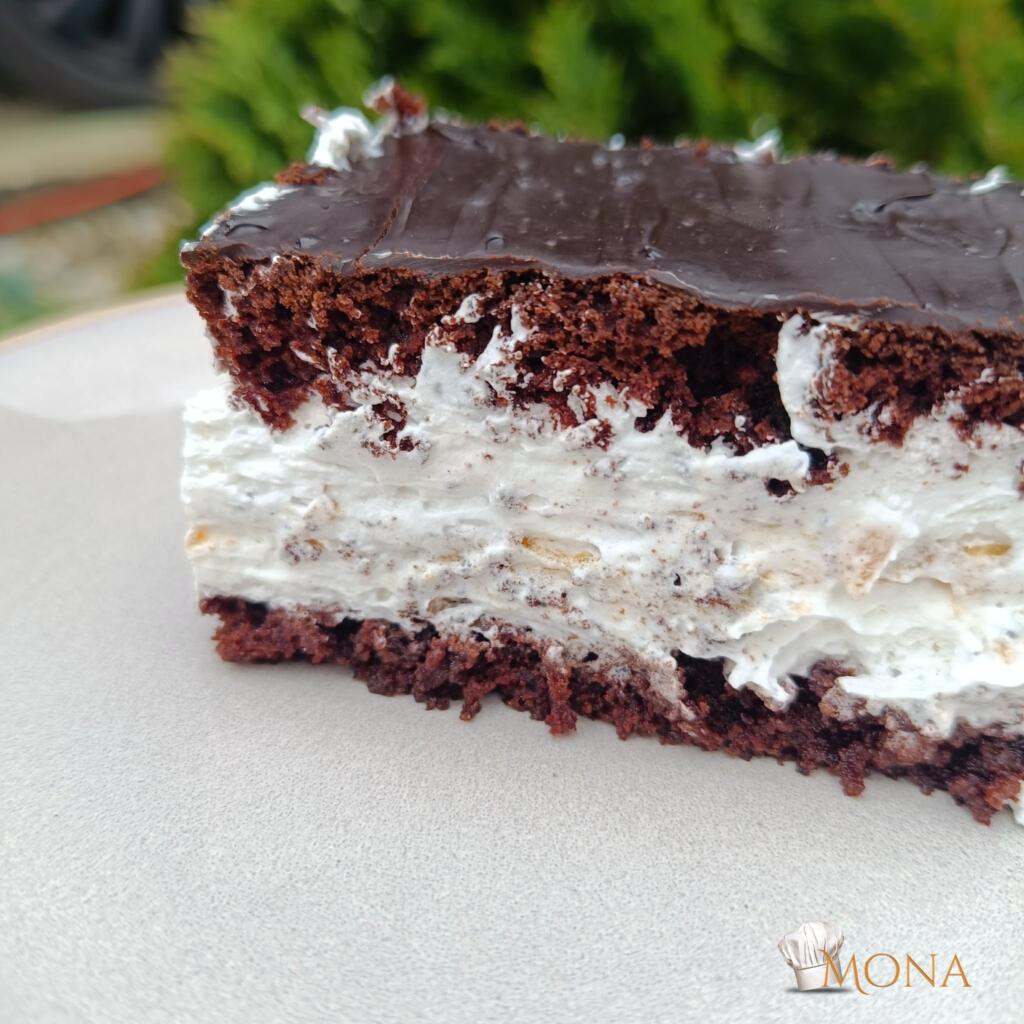 Rátesszük a piskóta tetejét, majd olvasztott csokival bevonjuk.